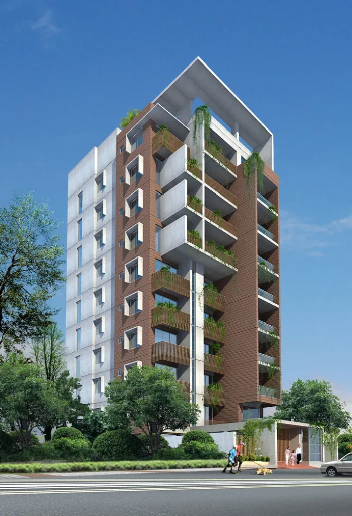 Angan Serenity is the creation of Angan Properties Ltd. It has been designed and planned in such a way to give you highly pleasant comfort with abiable surroundings. Architect put the best effort to ensure maximization of functional aspects as well as the aesthetics of the project, creating responsive openness and comfort. The exterior of this building is expression of modern architecture.